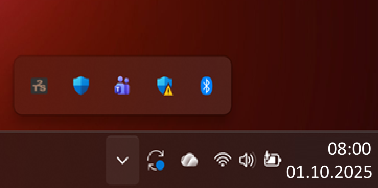 - Sobald Sie den Client das erste mal starten, wird dieser im Systray ausgeführt (unten rechts vor der Uhrzeit auf den Pfeil nach oben klicken)